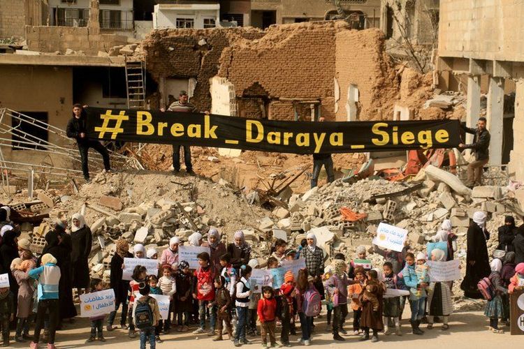 दराया येथे सरकार विरोधी कारवाया होतायत असा संशय आल्याने या भागाला सरकारच्या सैन्याने वेढा घातला होता. लोकांच्या विरोधाने आणि ४७ स्त्रियांनी सह्या केलेल्या पत्राने हा वेढा उठला. सरकार आणि सरकार विरोधी दोन्ही बाजूने हा भाग भरडला जातोय. युद्धापूर्वी या भागात ८०,००० नागरिक होते, ते आता केवळ ८००० उरलेत. सतत होणारा बॉम्बवर्षाव, पाणी, अन्नाची कमतरता, वीज नसणे अशा मुलभूत गरजा सुद्धा नागरिकांना मिळत नाहीत.