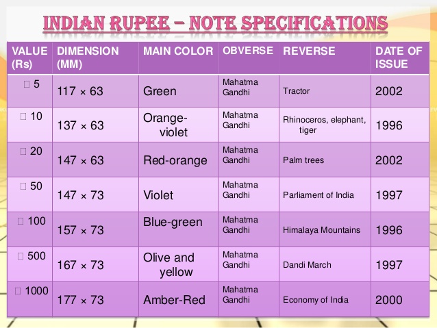 १०. नोटेचा आकार- प्रत्येक नोटेचा ठराविक असा एक आकार असतो. हजाराच्या नोटेचा ठरवून दिलेला आकार ७३ मिलीमीटर X १७७ मिलीमीटर असा आहे.
