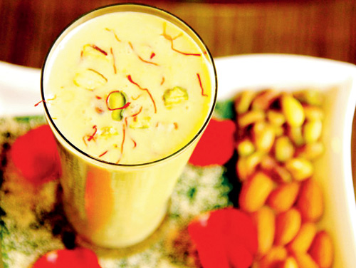 ५. फ्रीजमध्ये ठेवून थंड होऊ द्या. थंड झाल्यानंतर थंडाई पिण्यास तयार होईल.