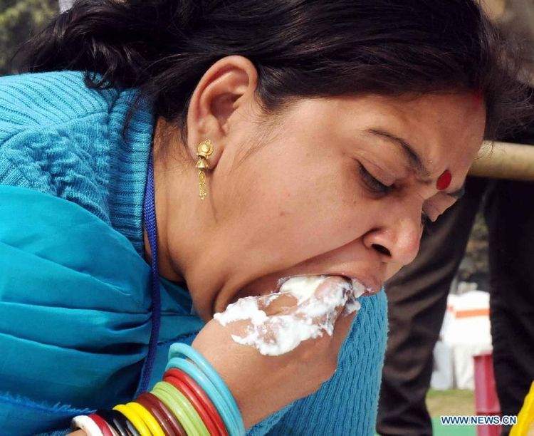 काल १८ जानेवारीला कडाक्याच्या थंडीत पटनामधल्या लोकांनी अवघ्या तीन मिनिटांत चक्क ७०० किलो दही संपवलं. पाहा या आधुनिक गोकुळवासियांना, दही खाताना त्यांचं भान हरपून गेल्याचं दिसतंय.
