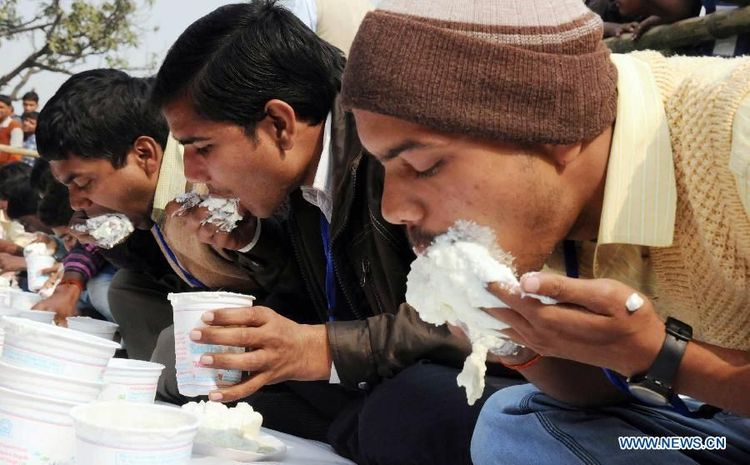 बापरे.. या लोकांनी ३ मिनिटांत ७०० किलो दही खाल्लं..