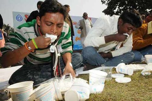काल पटनामध्ये ’दही खाओ, इनाम पाओ’ स्पर्धा पार पडली आणि लोकांनी मोठ्या उत्साहानं त्यात भाग घेतला. आजकाल लोक फास्टफूडच्या खूप आहारी गेले आहेत आणि त्यांनी दुधापासून बनलेले पदार्थ खाऊन तंदुरूस्त बनावं म्हणून पटना डेअरी प्रोजेक्टतर्फे ही स्पर्धा आयोजित केली गेली होती.
