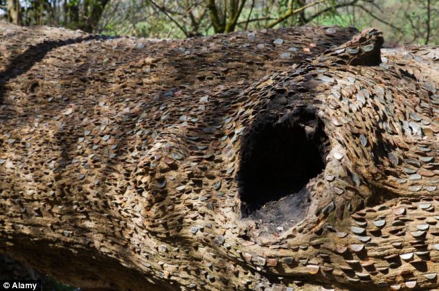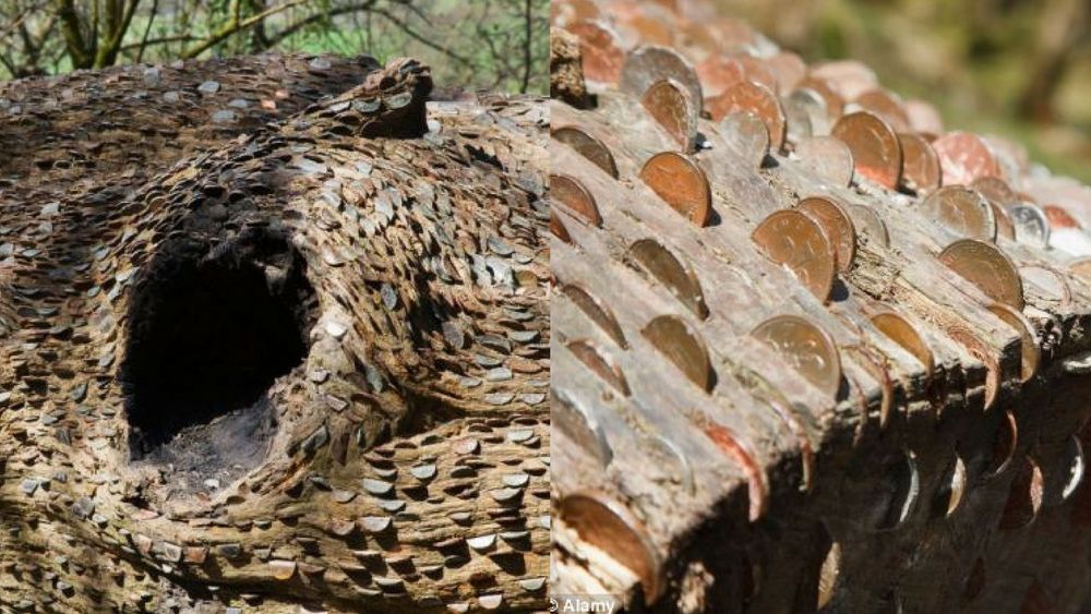 ब्रिटनमधल्या स्कॉटिश हाईलॅंडच्या पीक झोन फॉरेस्टमध्ये हे झाड आहे. अशा प्रकारची ७ झाडं इथे आहेत. ही झाडं कापलेली आहेत आणि या झाडांच्या ओंडक्यांवर नाणी बसवलेली दिसत आहेत. असं म्हणतात की ही सगळी झाडं आणि नाणी चक्क १७०० वर्षं जुनी आहेत.