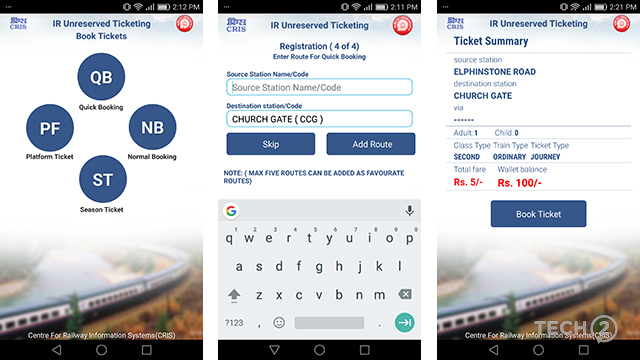 बुकींग करतेवेळी तुम्हाला दोन्ही स्टेशन्स निवडून प्रवास करणार्यांची संख्या, प्रवास श्रेणी इ. माहीती भरून वॉलेटवरून पेमेन्ट करावं लागेल.
