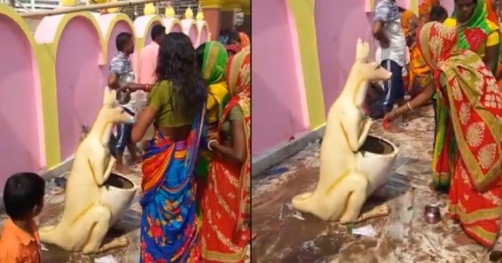 राव अंधश्रद्धा काय असते तर ते हेच. वरील व्हिडीओत बिहार मधील काही स्त्रिया कांगारूची पूजा करताना दिसतायत पण हा कांगारू म्हणजे चक्क कचऱ्याचा डब्बा आहे राव. त्याच्या पोटात असलेल्या जागेत कचरा टाकायचा सोडून या बायका त्याला पाण्याने ‘अभिषेक’ करत आहेत, हळद-कुंकू, फुले वाहत आहेत, पाया पडत आहते. अरे काय चाल्लय काय ? वरील प्रकार बघून या स्त्रियांच्या अज्ञानाची कीव येते राव.