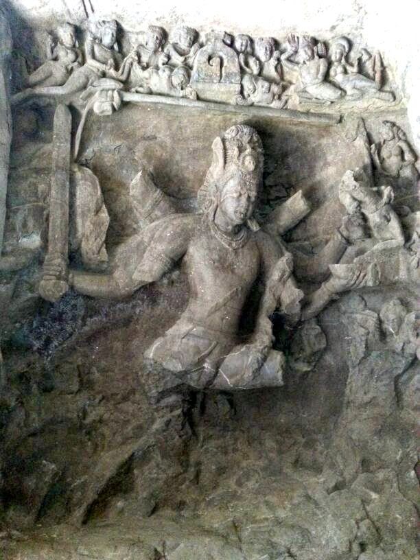 या दंतकथेवर आधारित मुंबई येथल्या घारापुरी लेण्यातले हे शिल्प. या शिल्पात भगवान शिवाच्या हाती रक्त जमा करण्यासाठी वाडगा दाखवण्यात आलाय. असं म्हणतात की शिवाने ऋषींना त्रास देणाऱ्या गजासुराला मारून त्याचे कातडे अंधकासुराच्या वधाच्यावेळी स्वतः भोवती गुंडाळले होते. हे चामड्याचे आच्छादन सुद्धा या शिल्पात आपण पाहू शकतो.