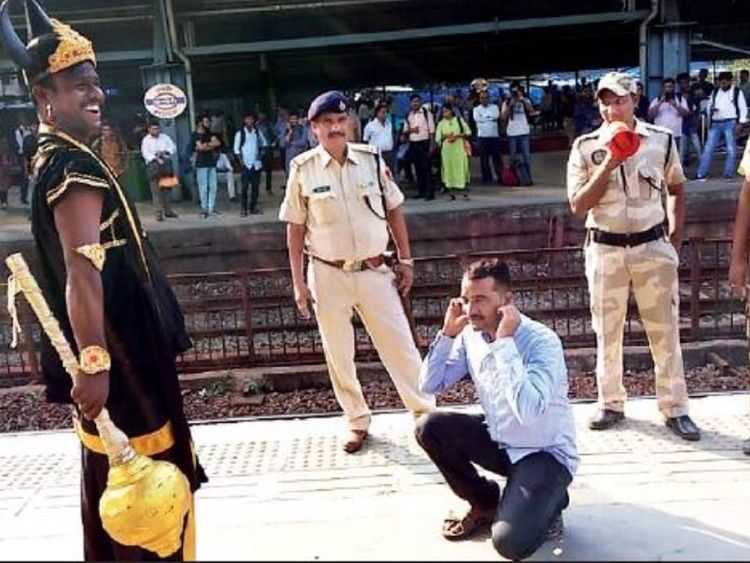 हे यमराज म्हणजे यमराजच्या वेशातला माणूस हा रेल्वे संरक्षण दलातील जवान आहे. ६ नोव्हेंबर पासून सुरु झालेल्या जागरूकता मोहिमेत तो सामील झाला होता. पश्चिम रेल्वेने शेअर केलेल्या व्हिडीओमध्ये तो रेल्वे रूळ ओलांडणाऱ्या लोकांना उद्देशून “जो भी पटरी क्रॉस करेगा उसे उठाही लेके जाऊंगा” म्हणताना दिसतोय.