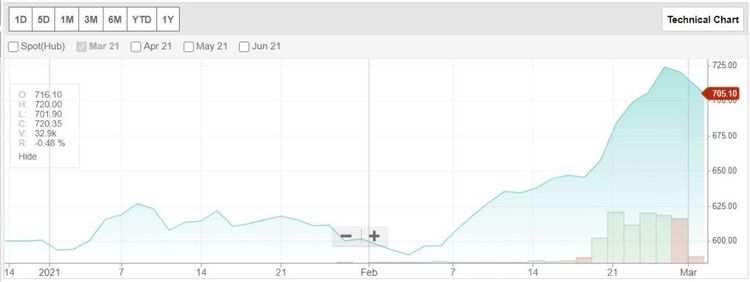 सोबत दिलेला तांब्याच्या भावाचा आलेख बघा.