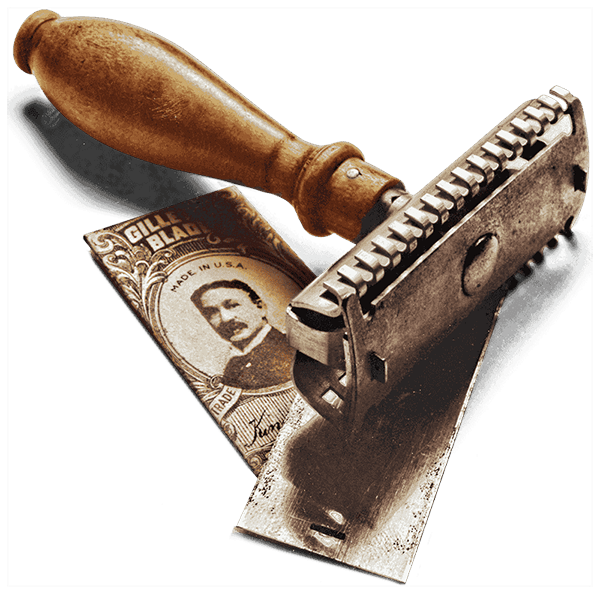 १९०१ साली जिलेट कंपनीचे संस्थापक किंग कॅम्प जिलेट यांनी विल्यम निकर्सन या आपल्या सहकार्यासोबत मिळून या ब्लेडचं डिझाईन बनवलं. या ब्लेड डिझाईनचं त्यांनी पेटंट घेतलं आणि १९०४ पासून त्याचं औद्योगिक स्वरूपात उत्पादनही सुरू केलं.