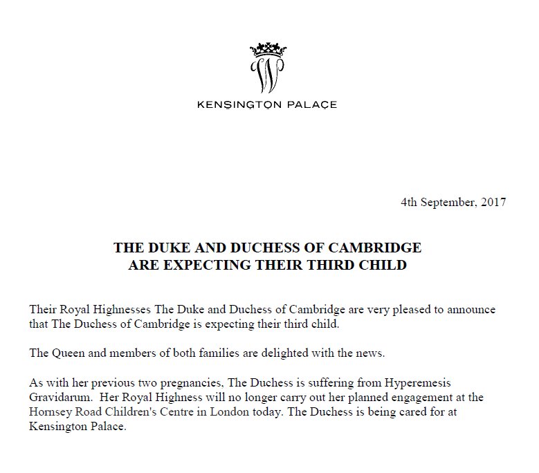 ते काही असो, सध्या कॅथरिनबाईंना सकाळी मळमळ आणि वांत्या सुरू झाल्या आहेत आणि येणारं बाळ हे गादीवर बसणाऱ्यांच्या यादीत सहाव्या क्रमांकावर असणार आहे. सध्याच्या राणीसाहेब एलिझाबेथनंतर प्रिन्स चार्ल्स (त्यांचा नंबर कधीच लागणार नाही असा लोकांचा खरा कयास आहे), प्रिन्स विल्यम्स, त्यानंतर त्यांची दोन मुलं- प्रिन्स जॉर्ज आणि प्रिन्सेस शार्लटनंतर या बाळाचा गादीसाठी नंबर लागेल. प्रिन्स हॅरी यामुळं आणखी एक स्थान खाली गेला आहे.