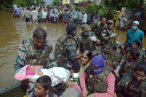 नुकताच एक व्हिडीओ व्हायरल झाला आहे. या व्हिडीओमध्ये पुरातून सुखरूप बचावलेली एक स्त्री जवानांच्या पाया पडताना दिसत आहे. हा पाहा तो व्हिडीओ.