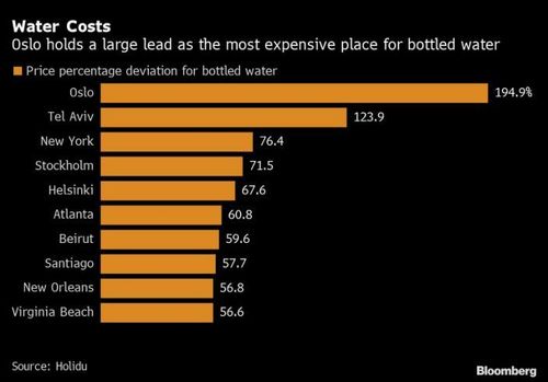अमेरिकेच्या वेगवेगळ्या शहरात आणि जगभरातल्या इतर शहरात पाण्याची किंमत कशी बदलते याचा अभ्यास करून यादी काढण्यात आली. यामध्ये जगात सर्वात महाग पाण्याची बाटली मिळणारी ५ शहरं आणि सर्वात स्वस्त पाण्याची बाटली मिळणारी ५ शहरं खालील प्रमाणे आहेत.