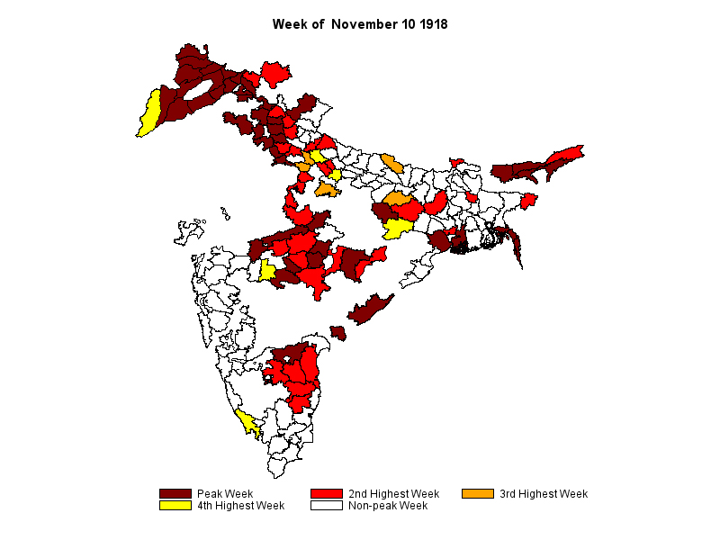 या रोगाची पहिली लाट जूनपर्यंत टिकून राहिली. या कालावधीत फार जीवित हानी झाली नाही. दुसऱ्या लाटेत (ऑगस्ट ते नोव्हेंबर) मात्र जगभरात कोटीच्या कोटी माणसं मारली गेली. दुसऱ्या लाटेतच हा रोग भारतात आला. युद्ध संपलं होतं. सैनिक आपापल्या घरी परतत होते. ब्रिटीशांच्या बाजूने लढणारे सैनिक जेव्हा मायदेशी परतले तेव्हा सोबत त्यांनी ‘स्पॅनिश फ्ल्यू’ आणला होता. उत्तर, पश्चिम, आणि मध्यभारतात माणसं आजारी पडू लागली. दक्षिण आणि पूर्वेकडील भागात याचा फारसा परिणाम दिसून आला नाही. पुढे भारतात १९१८ ते १९१९ पर्यंत जवळजवळ २ कोटी माणसे मेली.