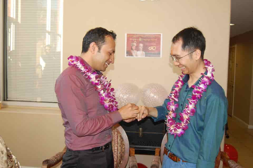 हृषी : एखाद्या लग्नाला अनेक पैलू असतात. दोन मनांचे एकत्र येणे, धार्मिक विधींमधले लग्न आणि लग्नाची कायदेशीरता. हे लग्न पहिल्या पद्धतीचे होते. भारतामध्ये कायदेशीर मान्यता पूर्णपणे स्पष्ट नाही ह्याची साहजिकच मला जाणीव होती . मी आणि विन एक वर्षांपूर्वी भेटलो आणि एकमेकांना पसंत करू लागलो. आणि हो, तो व्हिएतनाममधला आहे, चीनमधला नाही. बहुतेक पेपरवाल्यांनी त्याला चीनी माणूस करून टाकला आहे. असो. तर, मी त्याला एप्रिलमध्ये मागणी घातली आणि त्याने हो म्हटले. आम्ही जूनमध्ये साखरपुडा केला. एकत्र राहू लागलो आणि एकमेकांना जाणून घेऊ लागलो. आम्हाला लवकरच जाणीव झाली की आम्हाला एकमेकांबरोबर आयुष्य काढायचे आहे. डेट करण्याच्या आधीपासूनच आम्हाला माहीत होते, आम्हाला कायदेशीर लग्न करायचे आहे. आमच्या दोघांचीच मूल दत्तक घेण्याची इच्छा असल्याने आमच्या लग्नाला कायदेशीर मान्यता असणे गरजेचे होते.