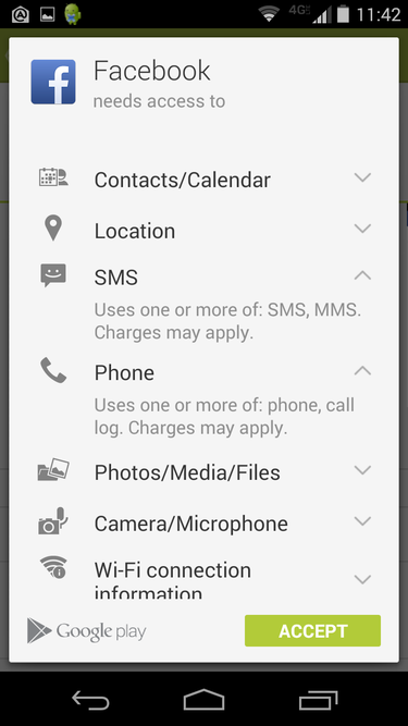 मायक्रोफोन बरोबरच कॅमेरा, कॉन्टॅक्ट्स, लोकेशन, कॅलेंडर अशा फोनच्या महत्वाच्या गोष्टींची परमिशन मागितली जाते. आणि या गोष्टी परमिशनमध्ये नमूद केल्याप्रमाणे तुम्हाला न विचारता वापरण्याची कोणत्याही अॅपला स्वातंत्र्य दिलेलं आहे.