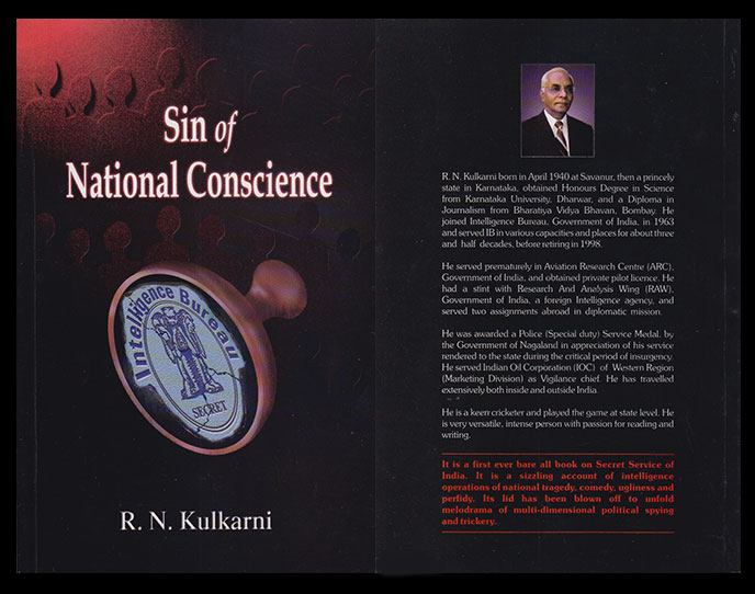 या खात्याचा कारभार एका "ब्लु बुक " नुसार चालतो असं म्हणतात. पण हे ब्लु बुक अनेक वर्षं त्या खात्यात नोकरी केलेल्या लोकांनीसुध्दा बघितलेलं नाही. कधीतरी या खात्यात काम करणारा एखादा अधिकारी निवृत्त होतो, आणि तो त्याच्या कार्यकाळाबद्दल पुस्तक लिहितो. मग एकदम खळबळजनक माहिती आपल्यासारख्या सर्वसामान्यांना वाचायला मिळते. असंच एक खळबळजनक पुस्तक नुकतंच आमच्या वाचनात आलं आहे. या पुस्तकाचं नाव आहे SIN OF NATIONAL CONSCIENCE आणि लेखक आहेत आर. एन. कुळकर्णी.