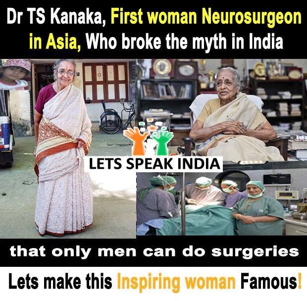 सर्जरीच्या क्षेत्रात सहसा पुरूषांचाच अधिक दबदबा असतो. या अशा क्षेत्रात चेन्नईच्या डॉ. टी. एस. (तंजावर सनतकृष्णा) कनका आपला पाय रोवून उभ्या आहेत. त्या आहेत आशिया खंडातल्या पहिल्या न्यूरोसर्जन. फक्त आशिया खंडातल्याच नाही, तर जगातल्या पहिल्या काही स्त्री-न्यूरोसर्जन्सपैकी त्या एक आहेत.