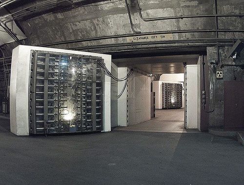 आता हा दुसरा दरवाजा बघा. अमेरिकन हवाई दलाच्या चेनेन माउंटन काँप्लेक्सच्या न्युक्लीअर बंकरचा हा दरवाजा आहे.इथे काम करणारे कर्मचारी अशा दोन दारांच्या आड त्यांचे काम करत असतात.जमिनीखाली २००० फूटावर कातळाच्याखाली त्यांची कार्यालये आणि प्रयोगशाळा आहेत.त्यांना लागणारी हवा बाहेरून पुरवली जाते.हे दरवाजे ३० मेगाटन स्फोटकांचा मारा सहन करू शकतात.३० मेगाटन म्हणजे नागासाकी शहरावर टाकलेल्या अणुबाँबसारखे १४२९ बाँब !