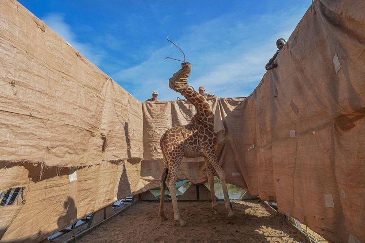 जिराफ हा आकाराने खूप मोठा प्राणी आहे त्यामुळे त्याला नौकेच्या आतमध्ये आणावं कसं हा पेच सर्वांना पडला होता कारण आकाराने लहान असणाऱ्या प्राण्यांना आपण जाळ्यात अडकवून आणू शकतो पण जिराफाचा आकार लक्षात घेता ते काही शक्य नव्हते म्हणून अगोदर त्या लोकांनी जिराफाला आंबे दाखवून नौकेत आणण्याचा प्रयत्न केला पण तो प्रयत्न काही यशस्वी झाला नाही; म्हणून त्यांनी शक्य असलेला एकमेव पर्याय निवडण्याचं ठरवलं ते म्हणजे बेशुद्ध करणाऱ्या औषधी डार्ट चा वापर करणे. हे औषधी डार्ट मारून जिराफाला अगोदर बेशुद्ध करण्यात आले आणि त्याला दोरीने बांधण्यात आले, परंतु यातही एक मोठी अडचण ही होती की जिराफांना माहीत नाही की त्यांची मदत केली जातेय त्यांच्या दृष्टीने तर त्यांची शिकार केली जातेय असेच त्यांना वाटणार ज्यामुळे जिराफ प्रतिकार करून लोकांना अडथळा आणू शकले असते, म्हणून मग यावर उपाय म्हणून कार्यकर्त्यांनी जिराफाचे डोळे झाकण्यासाठी त्याचे पूर्ण तोंड बारदानाने झाकून टाकले व सोबतच कानात देखील सॉक्स कोंबण्यात आले जेणेकरून जिराफाला आजूबाजूचे काहीही दिसणार नाही आणि ऐकूही येणार नाही.अशाप्रकारे पहिल्या जिराफाला त्यांनी नौकेत चालत आणले व पुढे सुमारे चार मैल नौकेत प्रवास करून एका मोठ्या अभयारण्यात आणून सोडले आणि पहिल्या जिराफाला सुरक्षित व यशस्वीरीत्या वाचवण्याचा प्रयत्न यशस्वी झाला.
