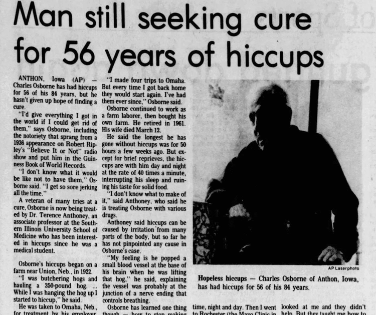 सध्या इतकी प्रगती आरोग्यव्यवस्थेत असूनही, ऑस्बॉर्नचा आजार सुरू झाल्याच्या एका शतकानंतरही, दीर्घकाळापर्यंत उचकी येणे हा यावर कायमचा उपाय शोधला जात नाही. सेफीच्या म्हणण्यानुसार, डॉक्टर काहीवेळा पेनकिलर औषधांचा वापर करतात तात्पुरते उचकी थांबवतात, परंतु ही औषधे रुग्णांची झोप उडवतात.