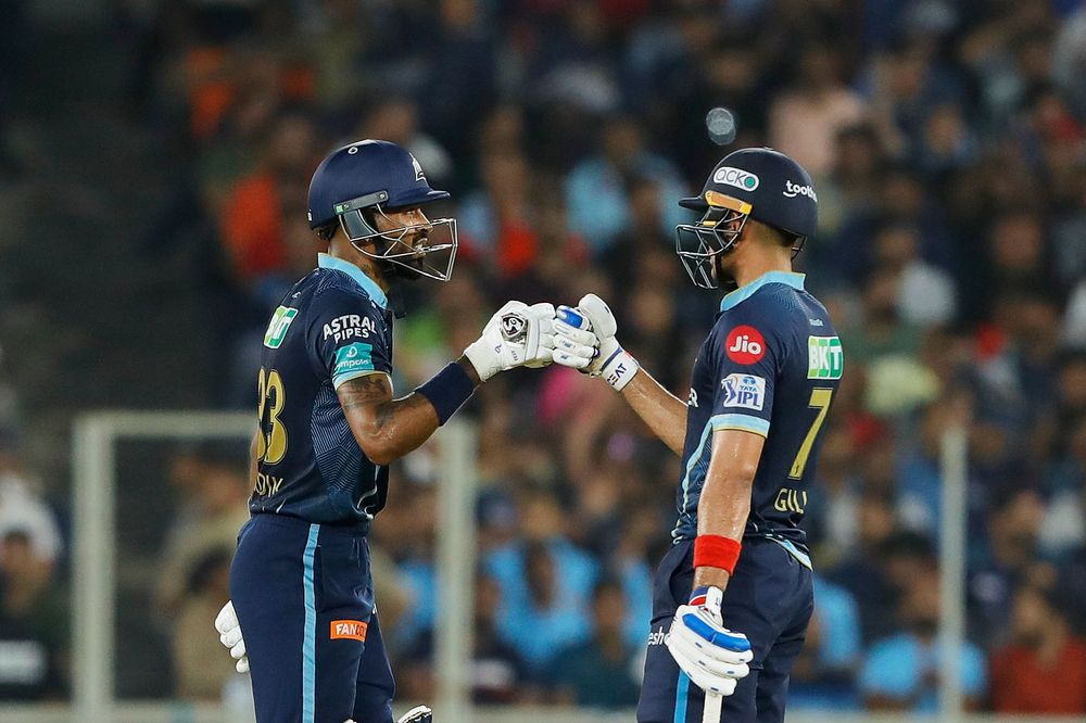 या धावांचा पाठलाग करताना गुजरात टायटन्स संघाकडून शुबमन गिलने सर्वाधिक ४५ धावांची खेळी केली. तर हार्दिक पंड्याने ३४ धावांचे योगदान दिले. तसेच शेवटी डेविड मिलरने शुबमन गिलला चांगली साथ देत नाबाद ३२ धावांचे योगदान दिले. हा सामना गुजरात टायटन्स संघाने ७ गडी राखून आपल्या नावावर केला.