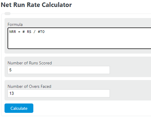 एखाद्या संघाचा नेट रन रेट हा पूर्ण मालिकेत त्यांनी केलेल्या सरासरी धावांची वजाबाकी प्रत्येक ओव्हरमागे सरासरी धावा यांच्याशी करून काढला जात असतो. सामना टाय झाला तर नेट रन रेट खूप महत्त्वाचा ठरतो.