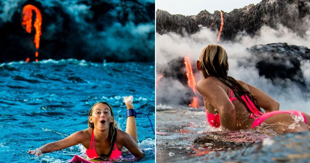 मदतीसाठी हाक माराल किंवा तिथून शक्य तितक्या लवकर पळून जाल, नाही का? पण ही ऍलीसन टिल ही एक भयंकर धाडसी बाई आहे. तिला हवाई बेटांवरच्या Kilauea या ज्वालामुखीच्या लाव्हारसाच्या प्रवाहाजवळ सर्फिंग करायचं होतं आणि तिने हा निश्चय या महिन्याच्या १२ ऑगस्टला तडीस नेला. या व्हिडिओमध्ये लाव्हारस पाण्यात कोसळताना दिसतोय पण तिच्या चेहर्यावर भीतीचा लवलेशही नाहीय. ऍलीसन बिन्धास्त आणि हसतमुखाने या ज्वालामुखीच्या पायथ्याशी सर्फिंग करताना दिसतेय. एकदा तर ती लाव्हारसामुळे समुद्रात कोसळणार्या खडकापासून अगदी थोडक्यात वाचल्याचंही बातम्यांत वाचायला मिळत आहे.