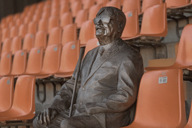 When he passed away two years ago, the club put a statue of him in his seat so he'll never miss a match.